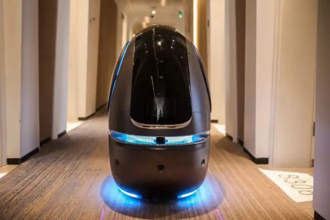跟傳統酒店不同的是,這個 “ 未來酒店 ” 沒有一個工作人員,沒有大堂經理,沒有前台,甚至就連掃地阿姨這樣的服務員都沒有,所有的工作統統交給了智能機器人...