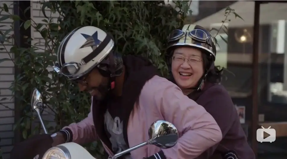 在带洋子回改造后的新家那天,卡拉莫骑着小绵羊,像《罗马假日》那般载着她回家。
