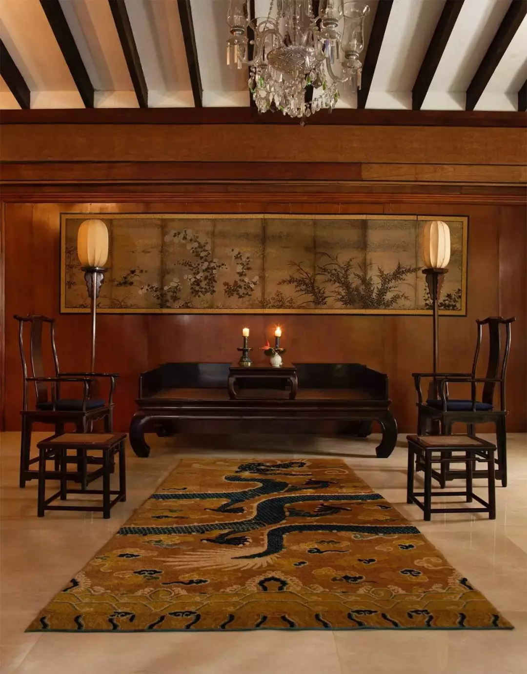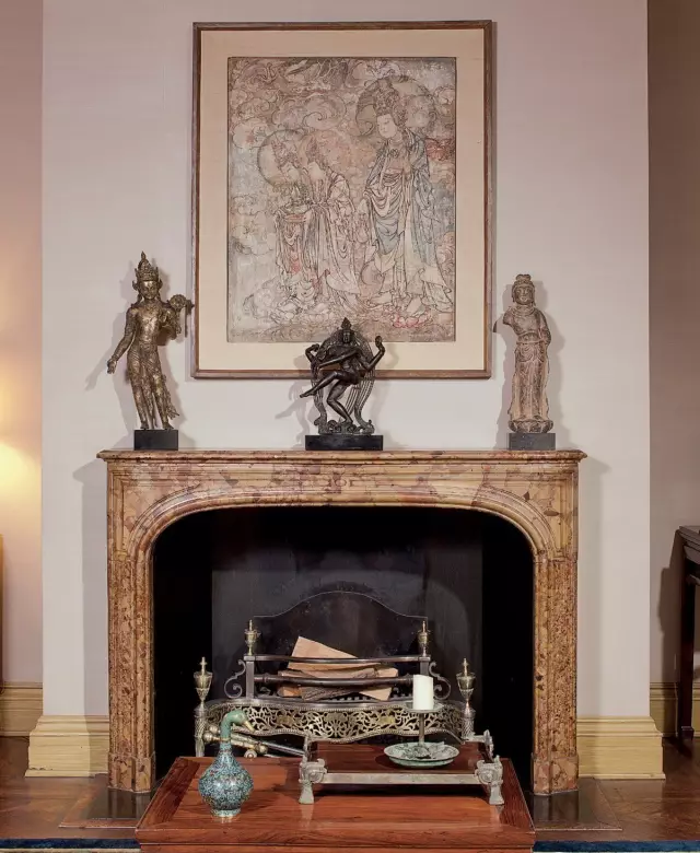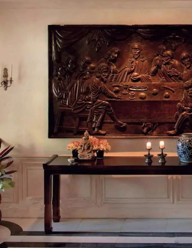 所以在位于纽约第五大道的宅邸中,他用自己超绝的文化品味与审美,打造出了一座跨越东西文化、冠绝古今的华美大宅。地上铺着清代宫廷地毯,条几上摆放唐代石刻菩萨,门边立着唐代陶俑......