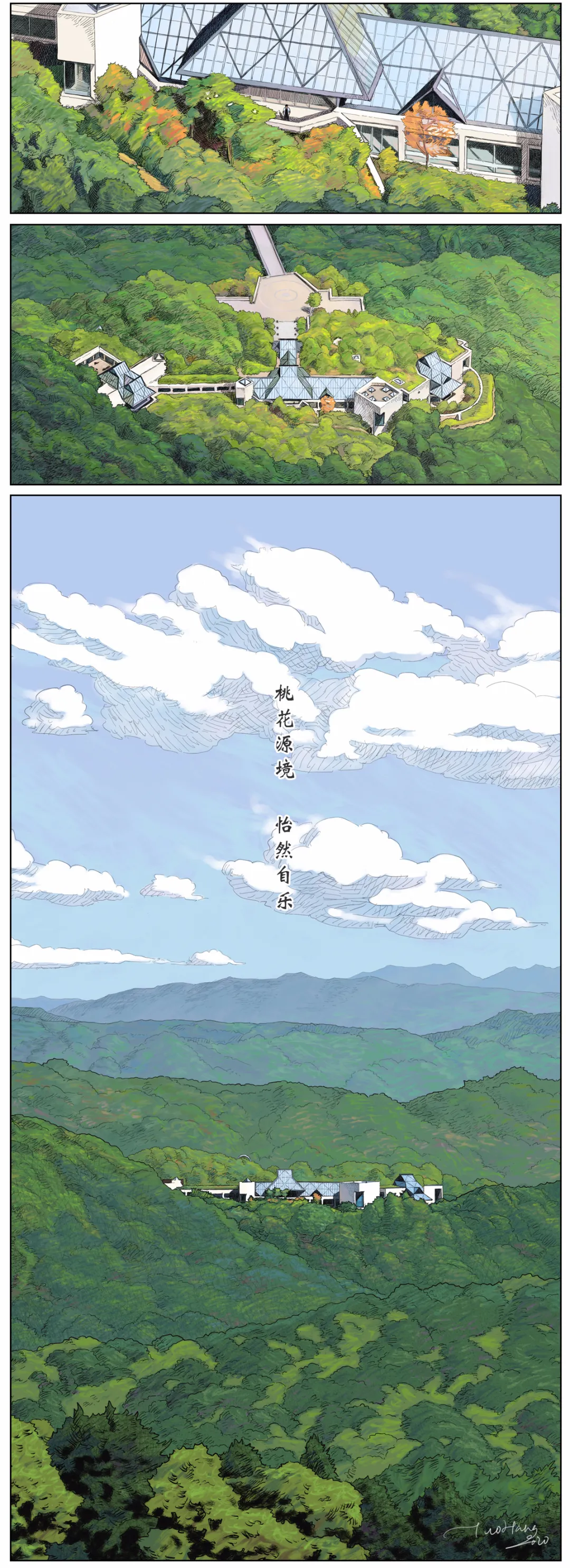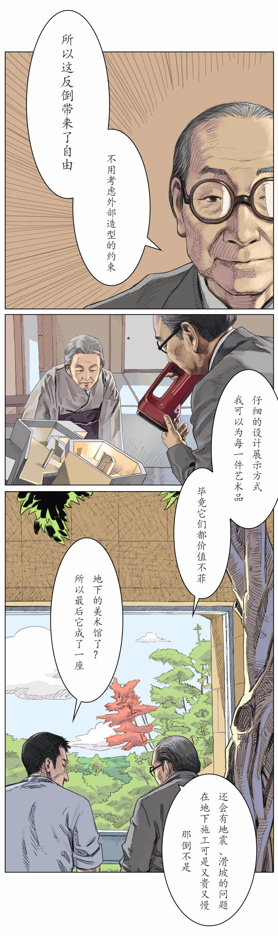 结果因为疫情,在家隔离了 老婆就建议画老贝的故事 我想了想那就画美秀美术馆吧,因为它的规模比较小 我本意是想创作一个篇幅比较小的故事 大概是现在的一半左右吧 结果,画完了分镜头一看,还是100多格 特别是后面的部分,为了表现 “空间的历时体验“ 我设计了一组连续的镜头,其中还包括不少大场面 而美术馆又是和环境融为一体的 搞得我在背景上花费了大量功夫 画树画得快抽筋了 apple pencil的笔头也被磨没了 到最后,我和邦禹使出了洪荒之力,还差点没画完 现在,可以长吁一口气 真累啊 熬夜画漫画果然还是太勉强了