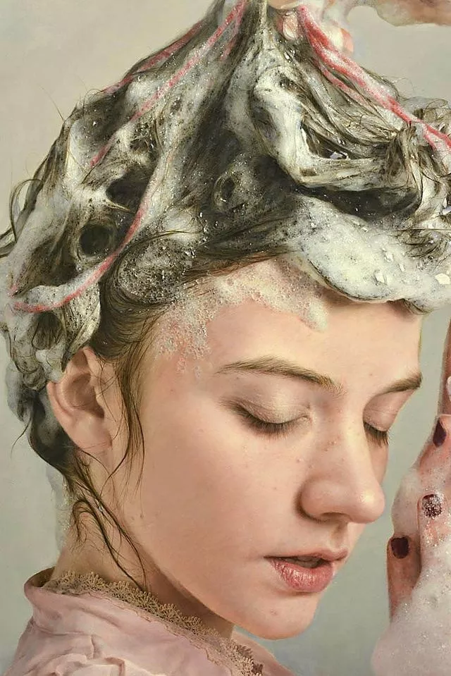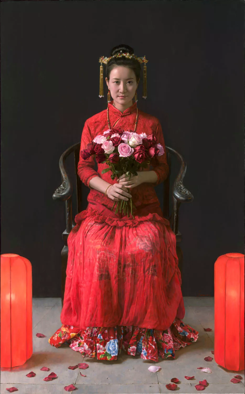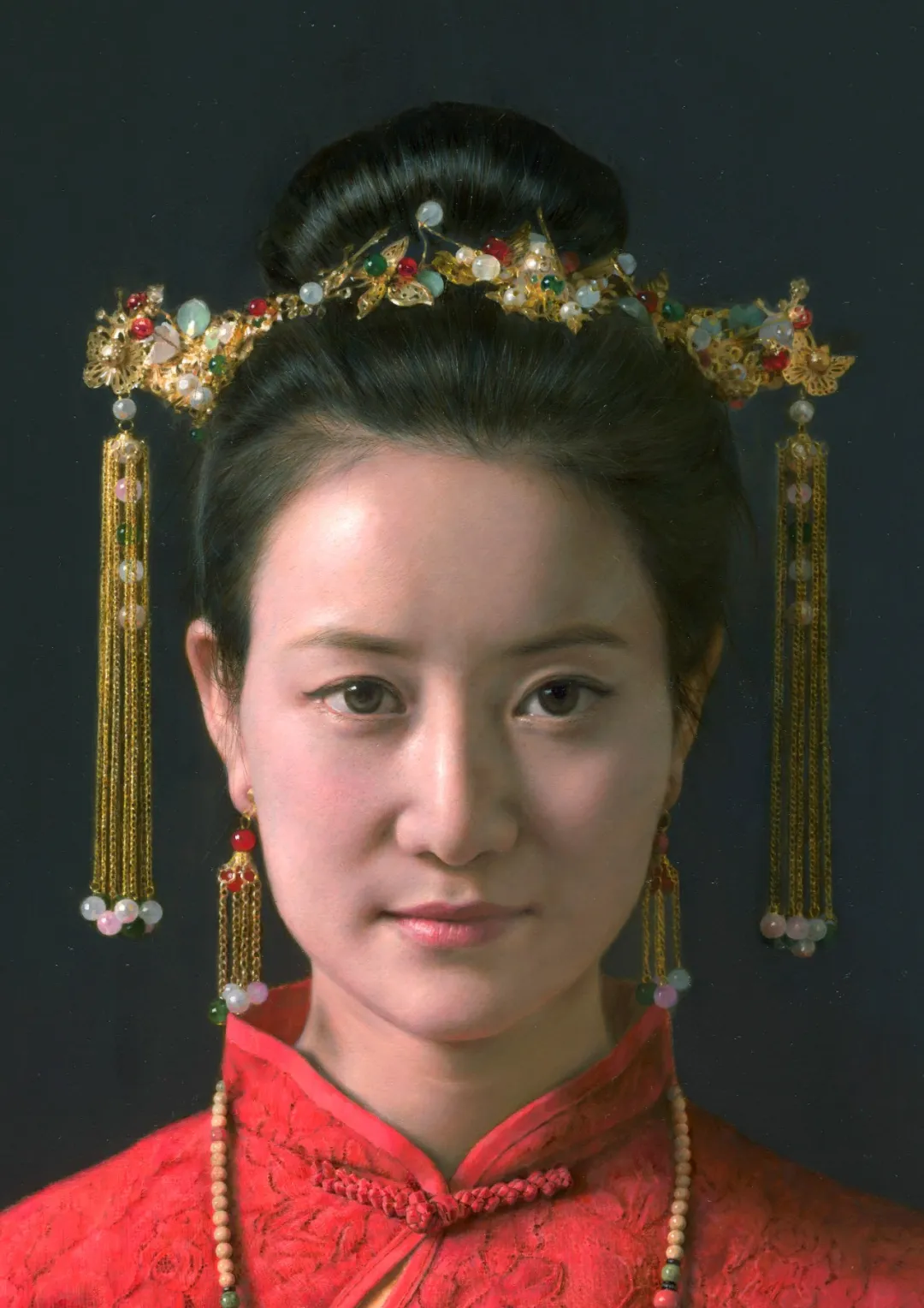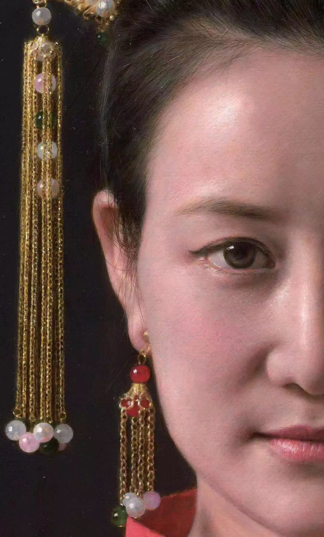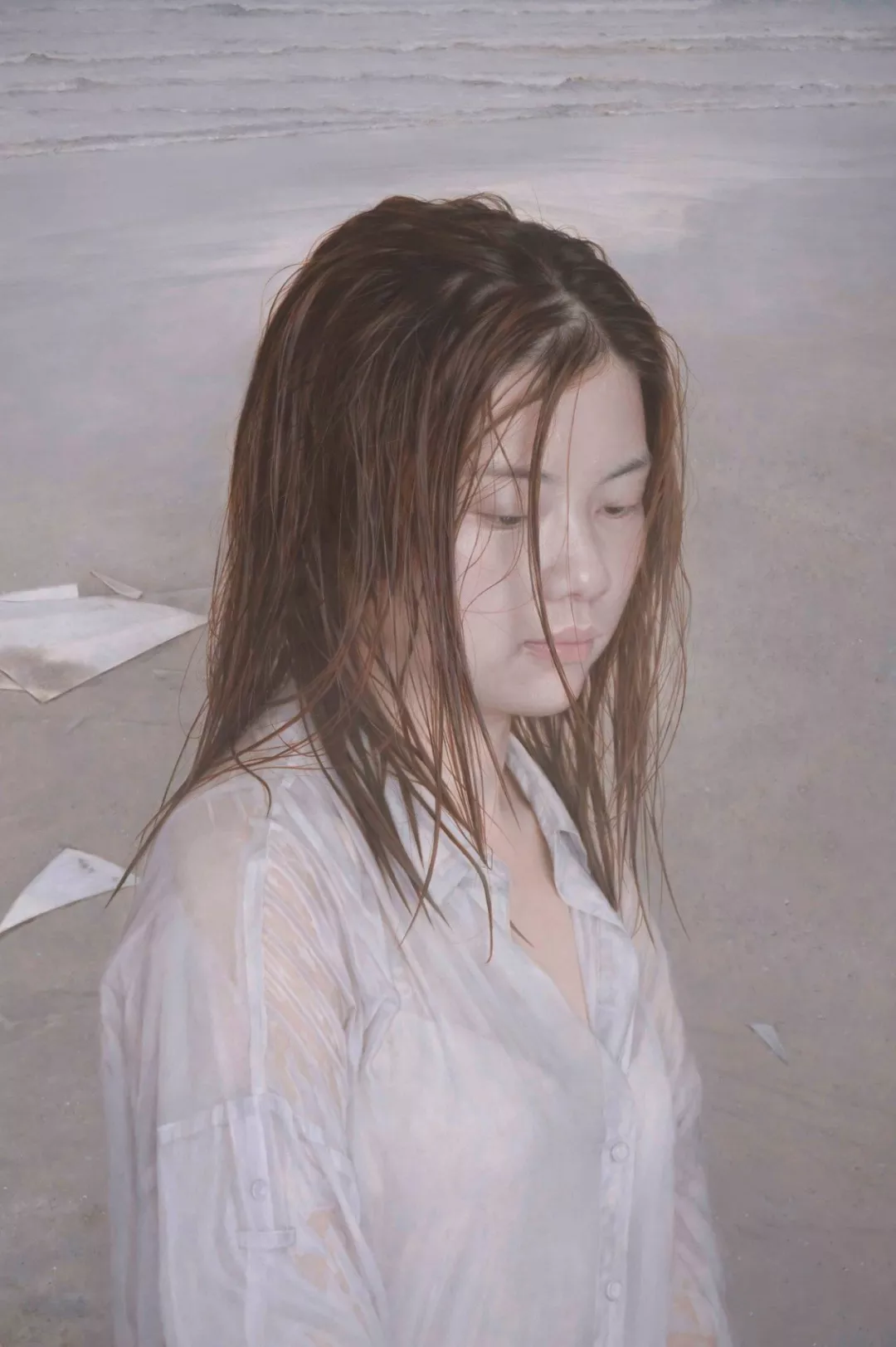 他的人物肖像, 几乎以假乱真, 在他的画里, 你不仅可以感受到衣服的质感, 察觉到人物的每一个神态, 就连每一根头发丝的飘动, 都能精准捕捉。