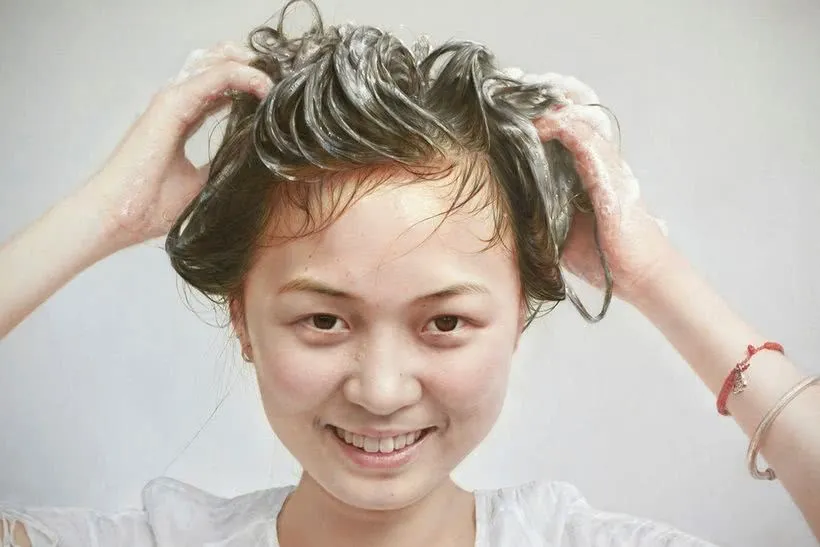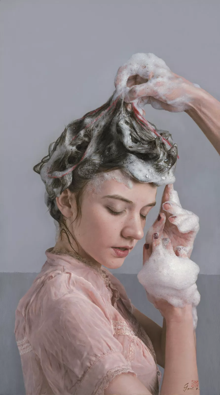 有没有被骗到? 其实这不是摄影作品, 而是1973年出生于浙江的 艺术家蔡杰的一幅画。 他的画逼真到什么程度? 即便放大来看, 也没有一丝瑕疵。 美女的一根头发丝, 一根手指头的形态, 都跟真人无异。