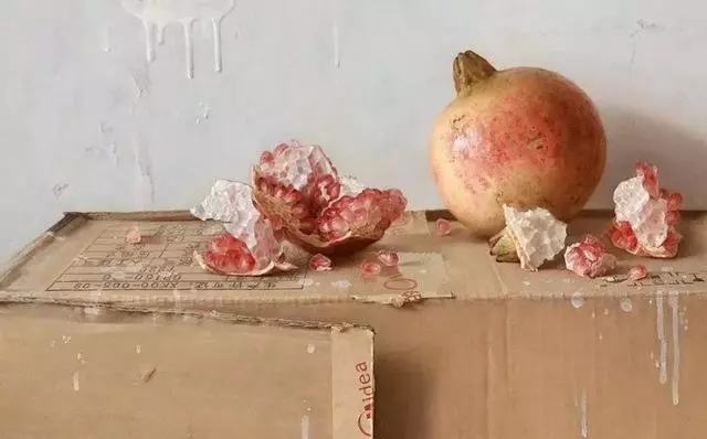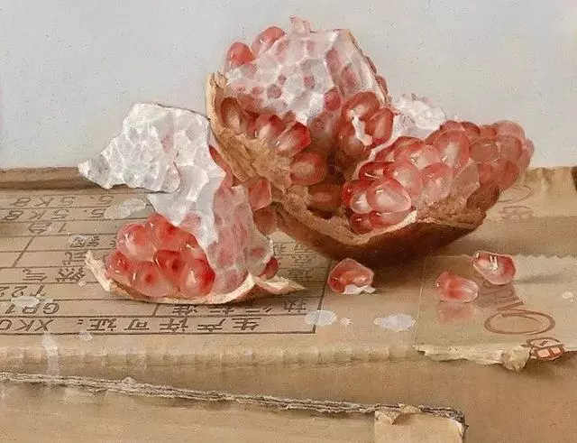 《石榴》局部 蔡杰的画, 就像是一幅超现实主题的摄影作品,