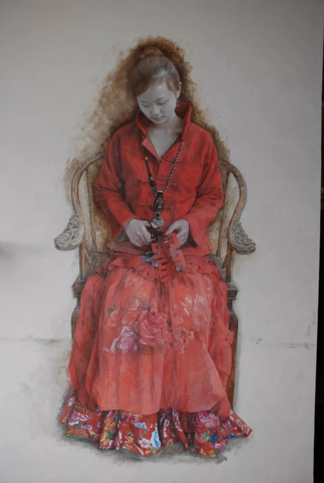 《喜》局部 蔡杰的画, 真的很难以不令人心动。 但是蔡杰的成名之路, 却非常坎坷。 虽然在高等学府, 中央美术学院深造, 但是蔡杰的画, 一开始并不受欢迎。 彼时人们喜欢那种大气磅礴的画风,