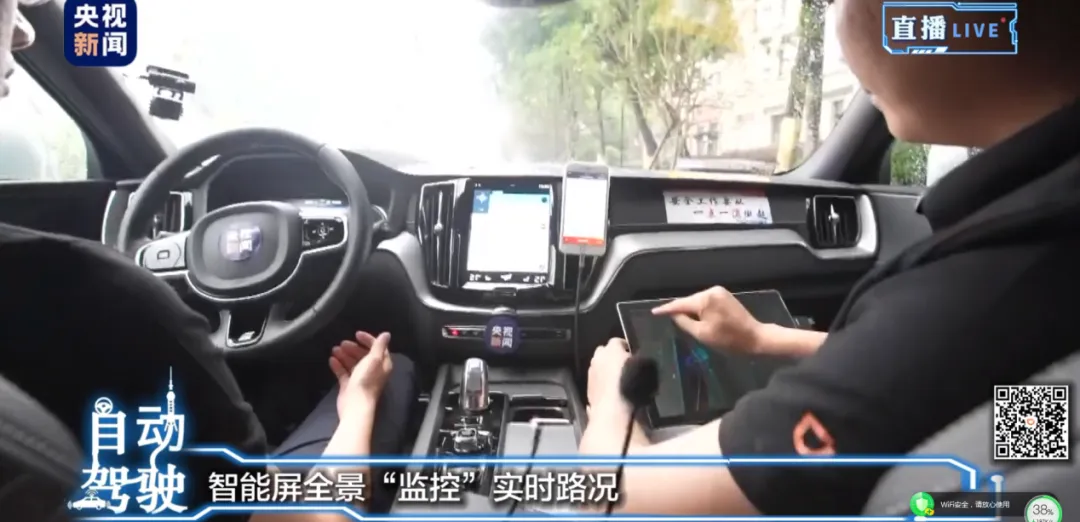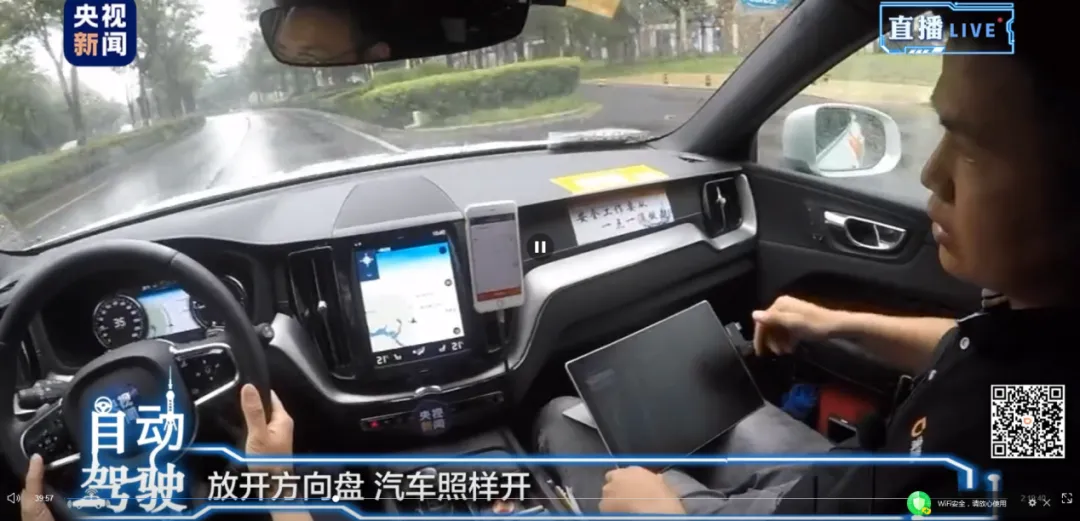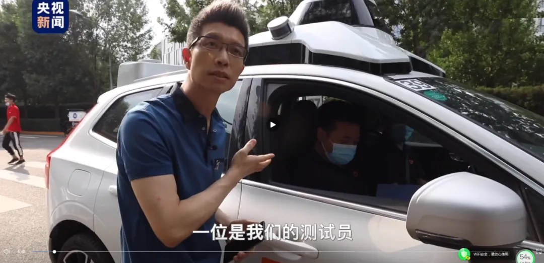 其实,坐在主驾驶的是一位滴滴安全驾驶员,有点类似于驾校的老教练。 不过,安全驾驶员和老教练还是有些区别的:他不会和大多数驾校教练一样,对自动驾驶车这个新学员指指点点,只会在突发情况下接管车辆,保障自动驾驶的出行安全。 而这个指指点点的任务,就落在副驾驶的滴滴测试员身上了。 测试员主要负责记录驾驶过程中的意外状况,再传给后台指挥中心的测试工程师,来为自动驾驶的算法进行进一步优化。 简单来说,这就像驾校教练在带学员,告诉学员该怎么开车,和我们学车的过程是一样的。 只不过这个学员不是人,而是冷冰冰的数据和机器。连接数据和机器的桥梁,就是这两位安全驾驶员和测试员了。 既然是个新手,就难免犯错误。 我们来看看,它都做了些什么令人哭笑不得的事情: 在央视记者的第一次体验中,从确认出发,到车辆真正起步就花了3分钟。如果是人类驾驶员,一颗一星差评,是绝对免不了的。