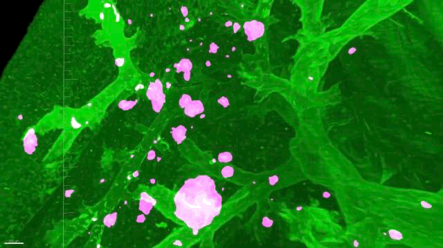 ▲ 肺癌转移动图(红色的是小肿瘤)