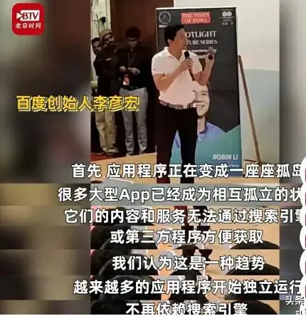 前段时间,李彦宏发言时所说:现在人们获取信息的方式,已经不再通过搜索引擎,而是各个应用程序的自动推荐。
