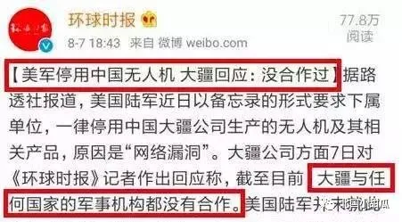 “美国市场上80%的无人机,都来自中国的大疆公司!”