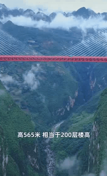 世界第一高桥: 北盘江大桥, 全长1341.4米,高565米, 相当于200多层楼高, 目光所及之处,好不震撼!