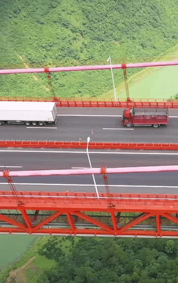 @微观农村 世界第4大桥: 鸭池河大桥, 桥面宽28米,全长1450米, 距水面距离434米, 这怕不是行驶在天上?