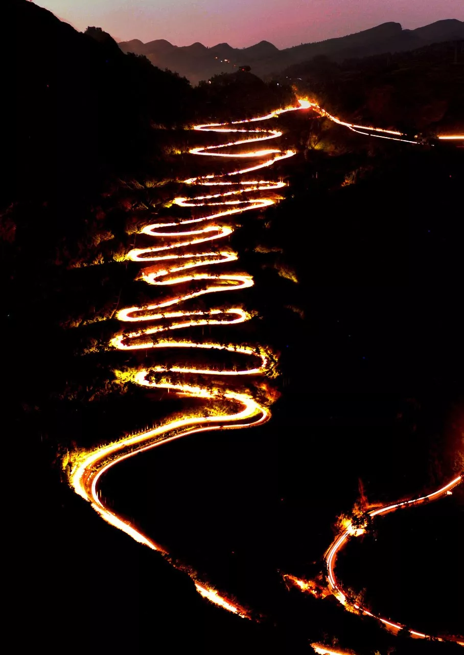 六盘水“八大弯”, 从山脚盘旋而上, 8个“U”形急转弯,惊险又刺激。 赛车手看了都直冒冷汗。