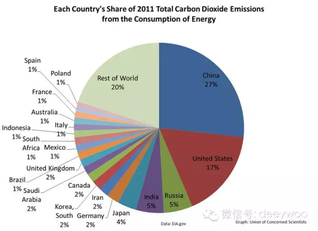 二组数据,2011年中国贡献了全球GDP的14.1%,却制造了全球二氧化碳排放的27%。排放二氧化碳主要就是烧煤烧汽油造成的,二氧化碳排得越多,