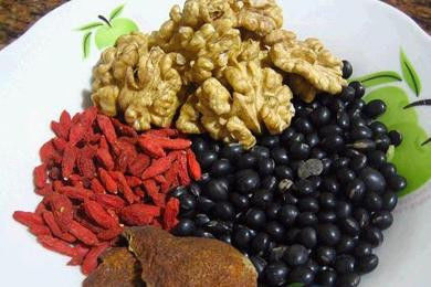 (5)治中老年白发黑豆适量,蒸熟晒干,反复几次,日服二次,每次6克,嚼后淡盐水送下。