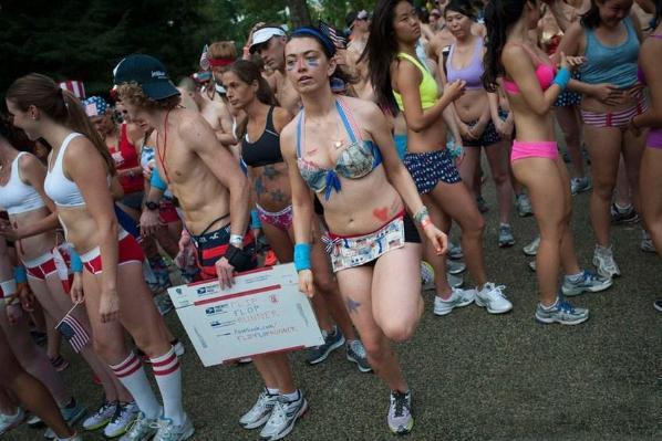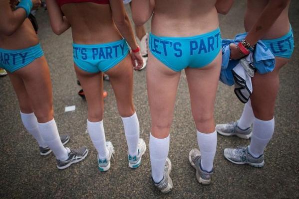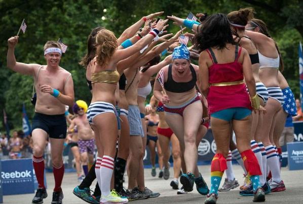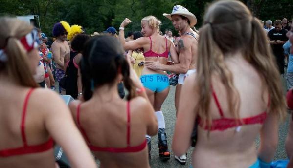 藤儿点评:在美国的土地上,开放不仅仅适用于经济,同时也发生在其他领域。如政治、学术、宗教和人民生活的方方面面。你或许还没见过,成群的男男女女穿着内衣裤在大庭广众之下跑步,几近疯狂!如果你有幸成为围观者中的一员,看到她(他)们的好身材,千万不要眼睛发直哦。在美国,广大美女表达美的方式,真是独树一帜! ------------------------------------------------------------------------------------------- 来源:http://jinsx1979.blog.sohu.com/170504875.html 2011-04-1109:44 美国大学举办穿内衣赛跑狂欢派对(组图) 美国大学生的开放是有目共睹的,这不,疯狂的春假刚过,美国加州大学欧文分校的大学生们就在校园里举行了一场规模空前的内衣赛跑狂欢。比赛当晚,数以千计的 学生穿着各式内衣环绕着校园奔跑。不少学生们为了能在比赛中一展各自的完美身材,而专门前往内衣店选购内衣,这也让该区的内衣销售额一改淡季的低迷状态。 美国服饰公司的内衣产品成为最热销的货物,著名内衣品牌“维多利亚的秘密”、“黑色星期五”也有不俗的销量。                       --------------------------------------------------------------------------------------- 来源: 网易于 2013-01-19 美内衣赛跑美女云集 已成最轻松娱乐赛事 如果说“铁人赛”是世界上最严酷、最刺激的运动,那么“内衣赛跑”就是最轻松、最娱乐的一项赛事了。“内衣赛跑”始于1997年,当时三名前来参加“铁人赛”的选手想出了这个主意。通常,参加铁人赛的选手为了成为“铁人”要随身携带着里程表,在一天之内在大海游泳3.8公里,再环岛骑自行车180公里,最后跑完42.195公里的马拉松全程。在这严峻的考验开始之前何不先轻松一下呢?