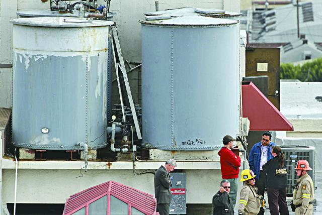 ▲昨天2月19日,洛杉矶警方在蓝可人住的饭店顶层的水箱里找到蓝可人的尸体