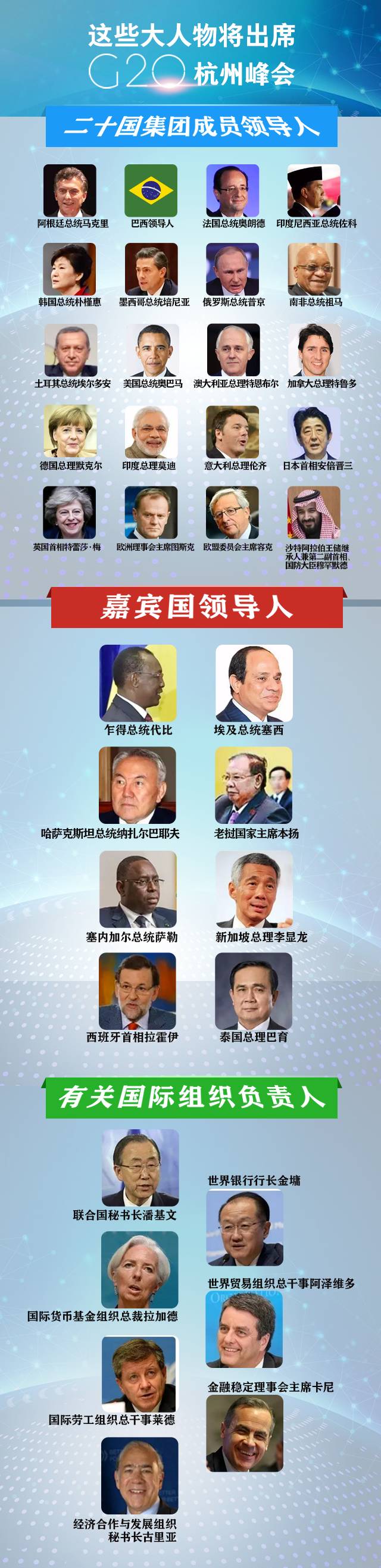 哪些重要人物将出席G20杭州峰会呢?快来认认脸吧!