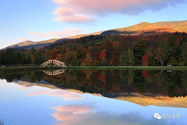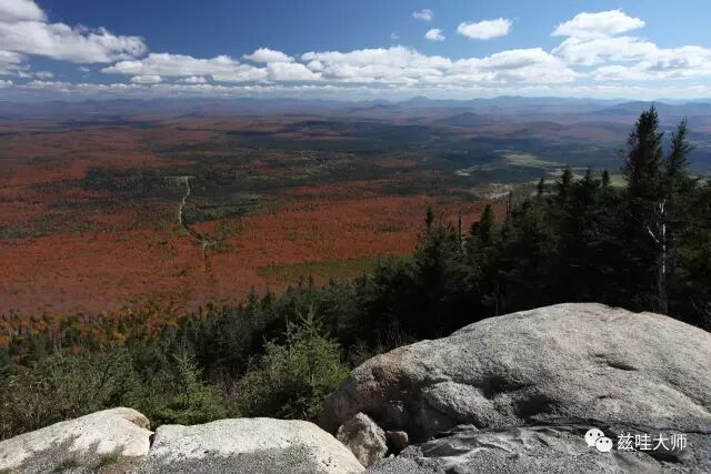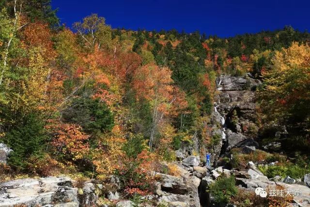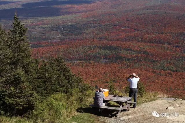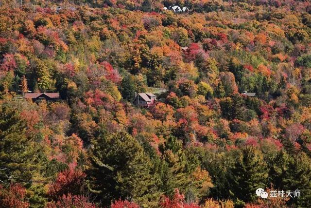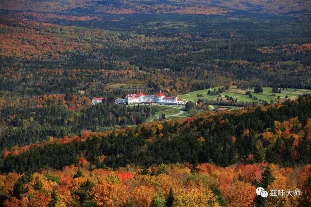 我们来到新罕布什尔州的白山公园,乘缆车登顶,因为是淡季, 缆车居然免费乘坐!这里冬天是滑雪圣地,山下建了大量度假村, 一栋栋小屋隐蔽在漫漫红叶中,又是一幅壮美图画!