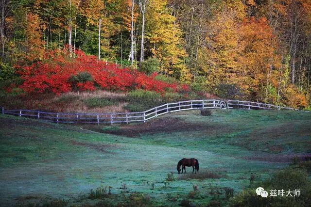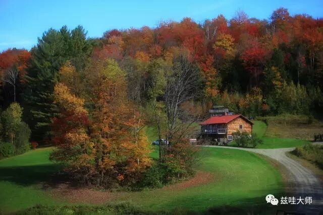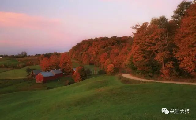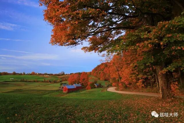 詹妮农场已经成了所有来佛蒙特拍秋色的必到之处,50年前就闻名遐迩的农场, 除了电影阿甘正传在这里拍摄外,生活杂志、百威啤酒都在这里取景, 小红房子,曲折的乡村小路,起伏的地形,加上那些形状很美的枫树, 构成了完美的视觉美景。