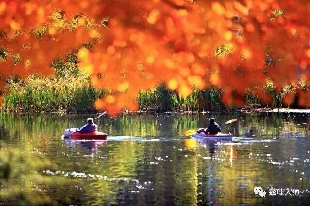 按图索骥,在寻找一处景点是误入一个人家的后院,退出时却发现一片 宁静的峡湾:枫香晚华静,锦水映山影,游人们湖上踏歌,红枫唱晚。 泛舟的是山林中的住户,交了朋友,拍了照片。