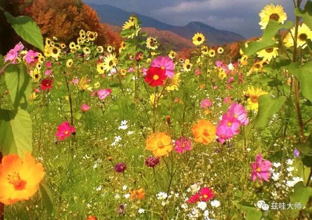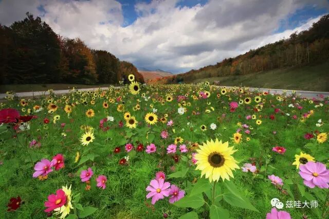 我们沿着100号公路向北,回到美加边境。边走边拍。猛然发现, 其中一段高速公路中间一片花海,忍不住停下来观赏,估计不会是野花, 怎么能如此集中而且品种繁茂的呢?我们都猜这里可能曾经是个电影取景地。