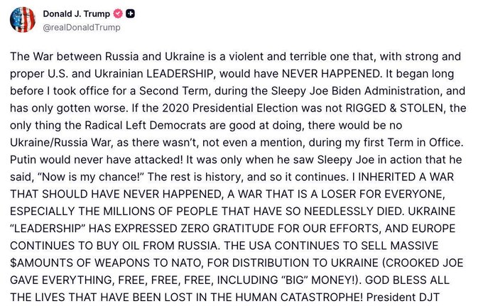老錢:這是出賣烏克蘭 (11/21/25) 今天,川普的關於烏克蘭和俄羅斯的28條出籠了。主要內容如下: 1. 烏克蘭割讓整個頓巴斯(Donbas)地區、 2. 將烏軍規模限制在60萬人,以及 3. 禁止烏克蘭加入北約等。 讓我怒不可遏! 我支持川普所有的MAGA的國內政策。 我是避免批評川普。但是,我也是實在無法不說真話。我也不得不寫了一些批評川普在俄烏問題上的錯誤,如下: 《老錢:我當真無語了。。。,14477》, 《老錢:為什麼要和全世界為敵?,10023》, 《老錢:精彩的白宮招待會,10256》, 。。。 。。。 這是一場事實明確,是非完全清楚,完全是由普金/俄羅斯的貪得無厭的領土野心而發生的侵略戰爭。 實際上川普是一直在偏袒俄國/普京。 川普總是在說什麼“試圖挽救許多生命”。可是事實上呢,他和普金的每一次談判,都是給普金拖延時間,給普金喘息,結果是更多的屠殺。。。一拖再拖!如果說是上一次當,還可以原諒。可是,已經是一而再,再而三,三而四,四而五。。。