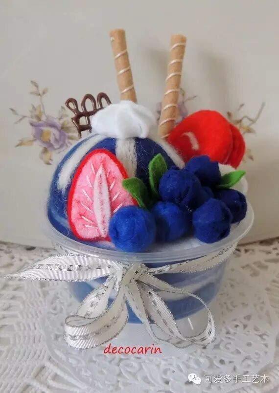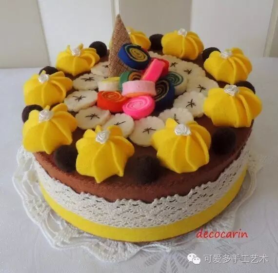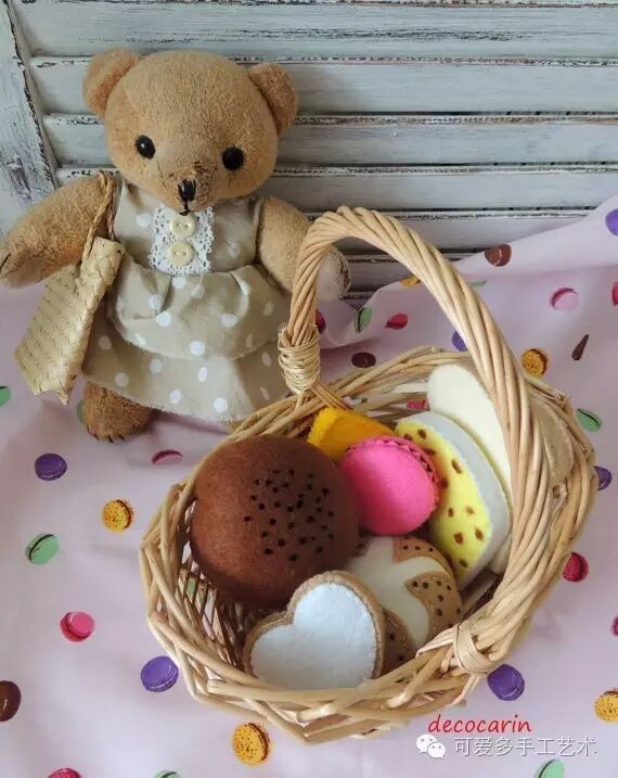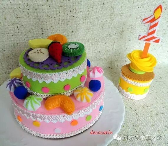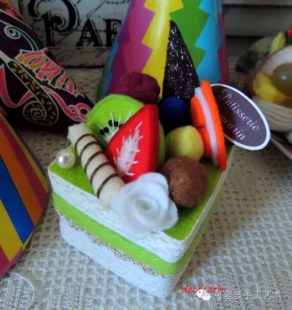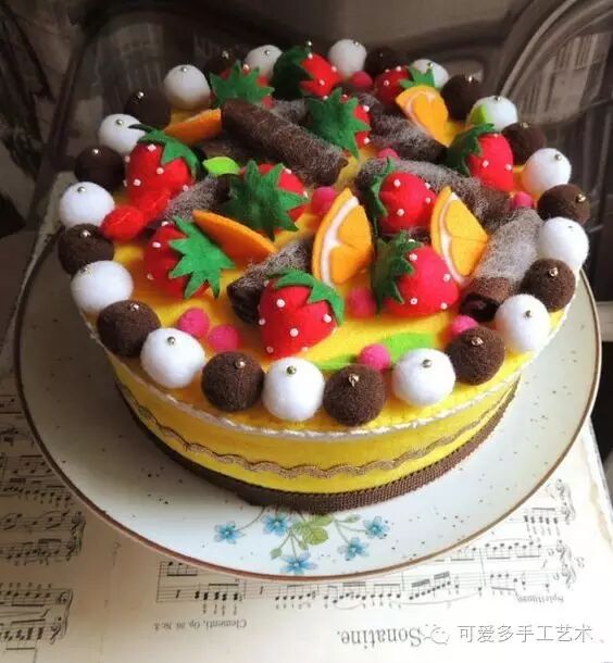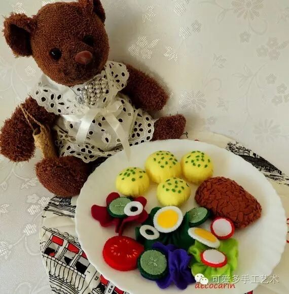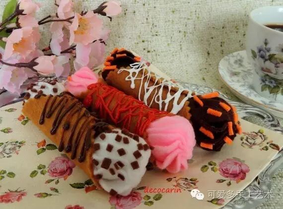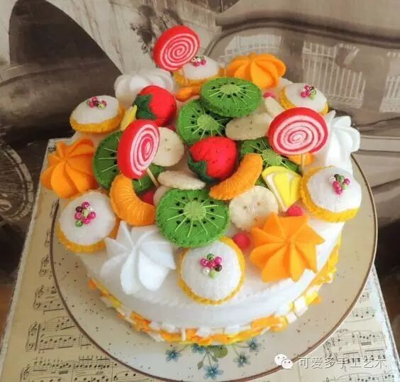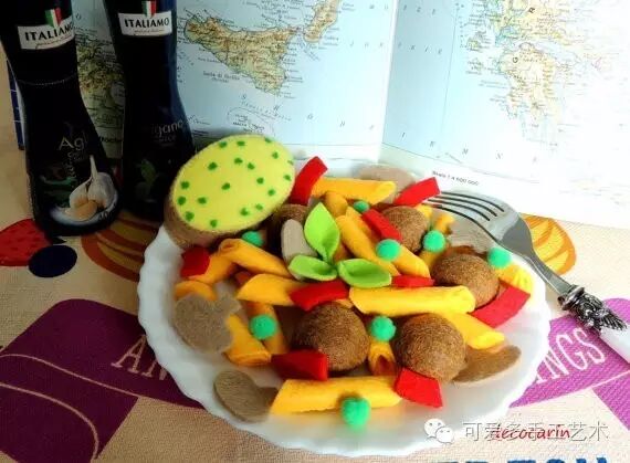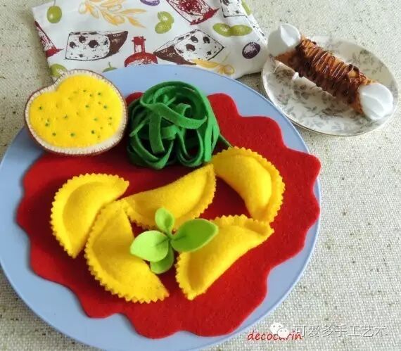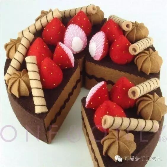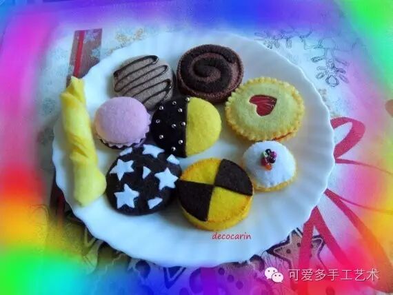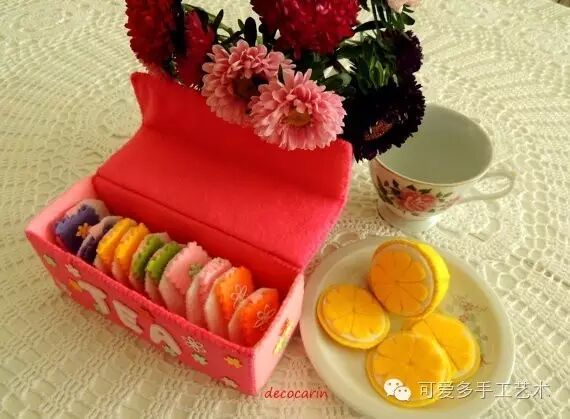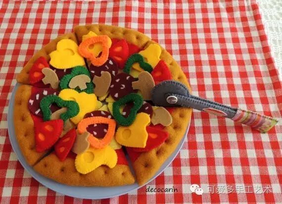 不织布材料比较特别,比一般的布要厚和硬,不会出现棉布掉线等情况,无论是裁剪还是缝合,都能轻松驾驭,用这种材质做出来的食物,无比的逼真,而且色彩明亮丰富又不艳俗,随时可根据自己喜欢的颜色来搭配做出令人“食欲大增”的食物,虽然做出来的食物到最后不能吃,但是,每天看着这些自己DIY的食物,幸福感油然而生。