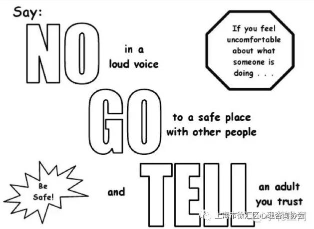 遇到 Bad Touch,马上应该大声说“不”,离开,去一个安全的地方,告诉家长或值得信任的成人,记住三部走:No,Go,Tell