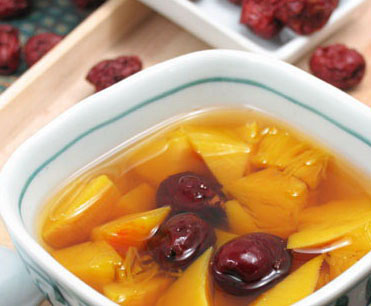 红枣还可以在铁锅里炒黑后泡水喝,可以治疗胃寒,胃痛,再放入桂圆,就是补血、补气的茶了,特别适合教师、营业员等使用嗓子频率较高的人。如果再加上4~6粒的枸杞子,还能治疗便秘,但大便稀的人就不要加枸杞子了。常喝红枣、桂圆、枸杞茶的女性朋友,皮肤白皙,美容效果不错。枸杞子不要放多,几粒即可,红枣和桂圆也就6~8粒就行了,每天早上上班后给自己泡一杯,不但补气血,还能明目,特别适合长期待在电脑前的工作狂们。