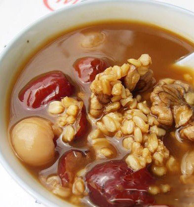 红枣、桂圆、花生、红豆、红糖、白果、枸杞子都是人们常吃的补血、补肾的食品,将它们互相搭配,就成了很好的补血食疗方。