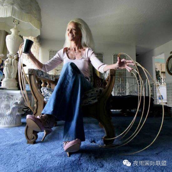 美国犹他州盐湖城65岁老妇莉·里德蒙德从1979年起就拒绝剪掉自己漂亮的指甲,所以它们越长越长。06年,她的每只指甲长度就超过了0.84米(33英寸),两手指甲总长度达到8.53米。