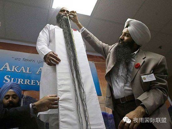 Sarwan Singh下巴胡子长达236cm,被载入吉尼斯世界纪录。