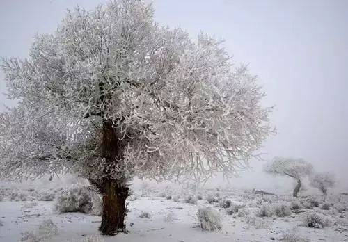 雪后的内蒙古胡杨林,天与地之间只有白,却美得耀眼而夺目。