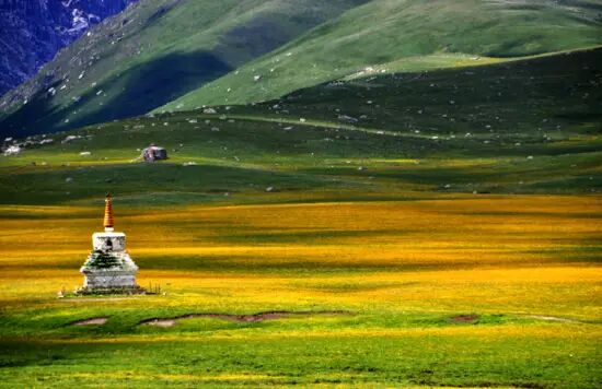 第3名:甘南 半坡的绿草,白的羊,红的古建筑,绚丽的色彩点缀出甘南无尽的美!