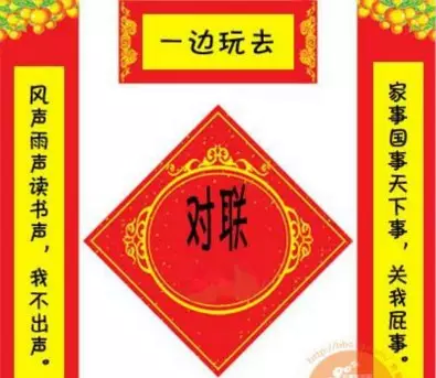 11 上联:红米饭南瓜汤,老婆一个孩子一帮;下联:红米饭王八汤,孩子一个老婆一帮;横批:与时俱进。
