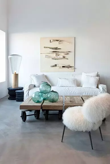 可在玻璃茶几下铺上与空间及沙发相配的小块地毯,摆上精巧小盆栽,让桌面成为一个美丽图案。茶几的高度一般与沙发坐面齐平;原则上,茶几腿和沙发的扶手与脚的风格相一致为佳。