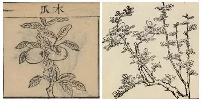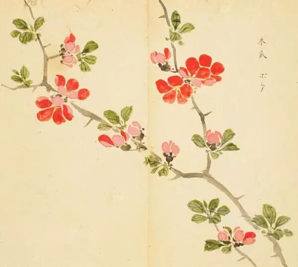 不过,细井徇书中的木瓜实为皱皮木瓜。皱皮木瓜有一个更常见的名字,叫做贴梗海棠,嗯,就是每年春天在“一张图/一篇文章教你辨别桃杏樱梅梨李海棠花”等科普贴里跑跑龙套的春花之一。尽管每次良心科普贴都会不厌其烦地告诉你:这货虽然长着海棠样子的花,实际上是木瓜属的啊,但是“皱皮木瓜”这个名字,乍一看像是在形容放太久蔫掉了的番木瓜,既可怜又显得难吃,叫人怎么忍心如此称呼一朵如少女般明艳动人的花儿?还是“贴梗海棠”平易近人些,不仅点出了其花状如海棠,还贴心地说明了人家的花是“贴梗”的、是三五朵一起簇生在枝条上的,再加上枝条带刺这一特征,它就比其它的春花要好认得多了吧。