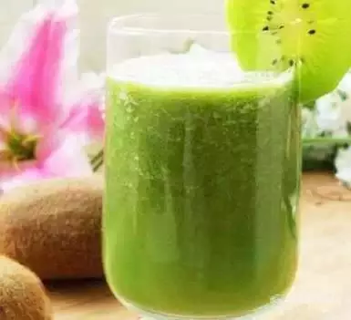 做法:黄瓜200克、猕猴桃30克、凉开水200毫升、蜂蜜两小匙。黄瓜洗净去籽,留皮切成小块,猕猴桃去皮切块,一起放入榨汁机,加入凉开水搅拌,倒出加入蜂蜜于餐前一小时饮用。