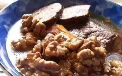 做法:蜜枣250克、核桃仁100克、白糖适量。将蜜枣去核,洗净,沥干水分;与核桃仁、白糖一起下锅小火炖煮;待汤羹黏稠、核桃绵软即可关火食用。此甜汤滋补肝肾、润肺生津、养血润发。