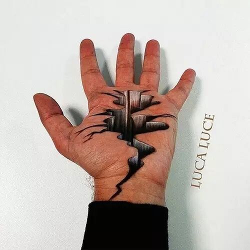 据美国Odditycentral网站7与27日报道,意大利化妆艺术家卢卡·卢斯(Luca Luce)利用丰富的色彩和阴影知识,在自己手掌中创作出许多超现实的三维错觉艺术作品。