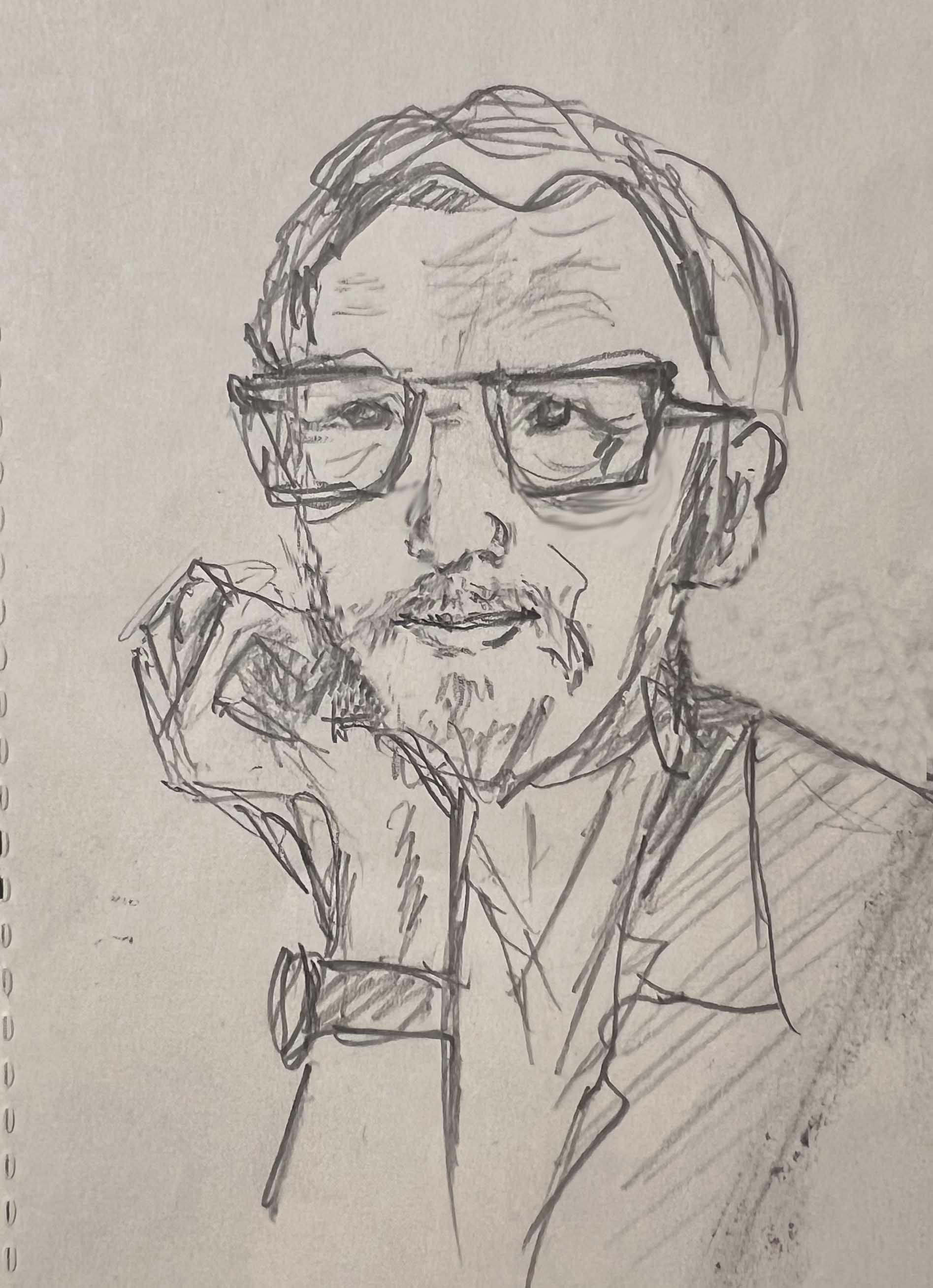 我想象中的老哥,他戴了一副眼镜,(是吗?)他在思考 。。。。