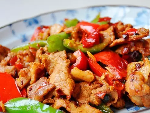 1,猪后腿肉切片,加水淀粉搅拌均匀。青椒把里面那个心去掉,切大块儿。