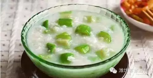 做法:西瓜皮200克,粳米100克,白糖30克。西瓜皮少许,削去外表硬皮,切成丁。粳米淘洗干净,炒锅上火,倒入水,加入粳米、西瓜皮,用旺火煮沸,再转用小火煮成粥,调入白糖即成。