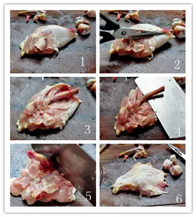 5.砸几下鸡肉就和骨头脱离了。