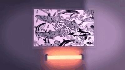 在家里的画板上画了一头鲸鱼