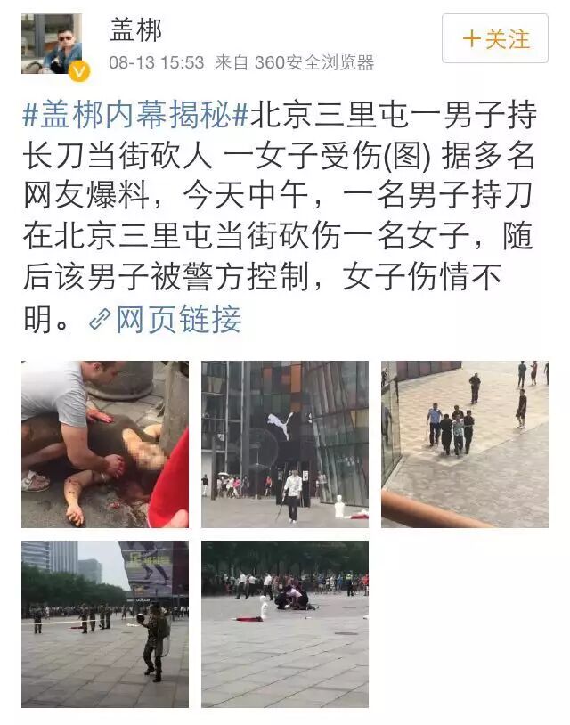 于是从昨天开始满眼尽是天津前线的消息,甚至CNN都派记者现场播报!可当我们都还没从大爆炸中缓过劲儿来的时候,又传来了北京三里屯砍人消息……