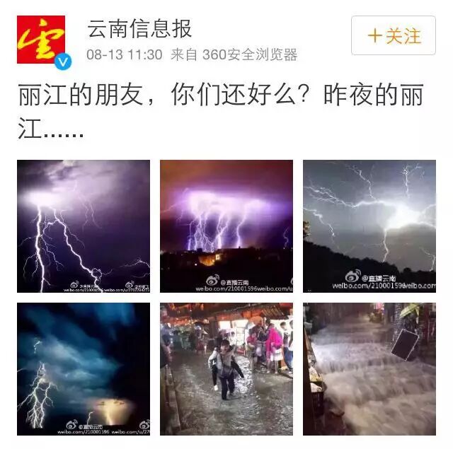8月12日夜间,云南丽江突发暴雨,短短不到一个小时时间内,城区街道变成一片“汪洋”。