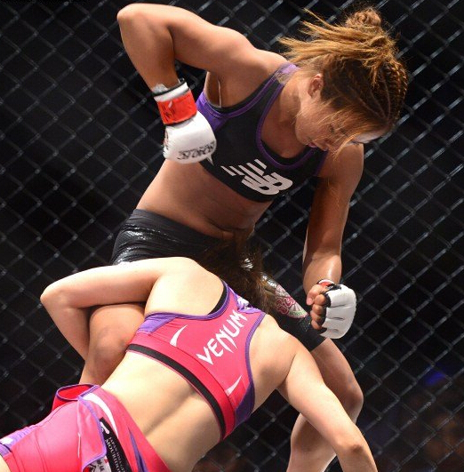 当地时间17日,韩国综合格斗举行,20岁的韩国美女格斗界新人宋妍儿在自己的首场职业赛上取得了振奋人心的胜利,她在第一轮比赛中就用一个技术性击倒KO了33岁的老将艾玛。