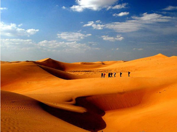 内蒙古响沙湾,又名“银肯响沙”,是一座高约110米的小山丘,距离包头50km。微风从45度的斜坡上滑下时,沙子似乎在轻轻吟唱。门票:120元/人。