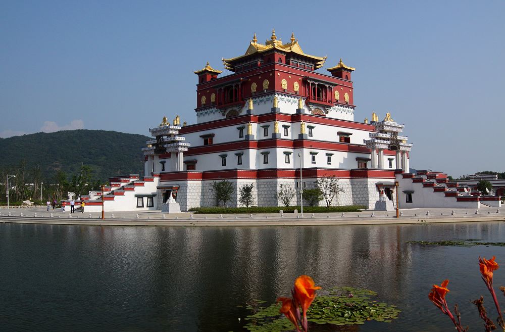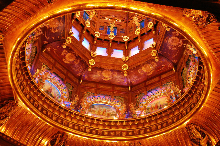 江苏梵宫,中国的建筑一直深受风水和佛教思想的影响,在梵宫更是表现的淋漓尽致。因为梵宫可是占据着最好的风水:它位于小灵山脚下,太湖之滨,侧畔还有高达88米的灵山大佛。梵宫是专为2009年第二届世界佛教论坛而建造的,宫内到处流光溢彩,金碧辉煌。