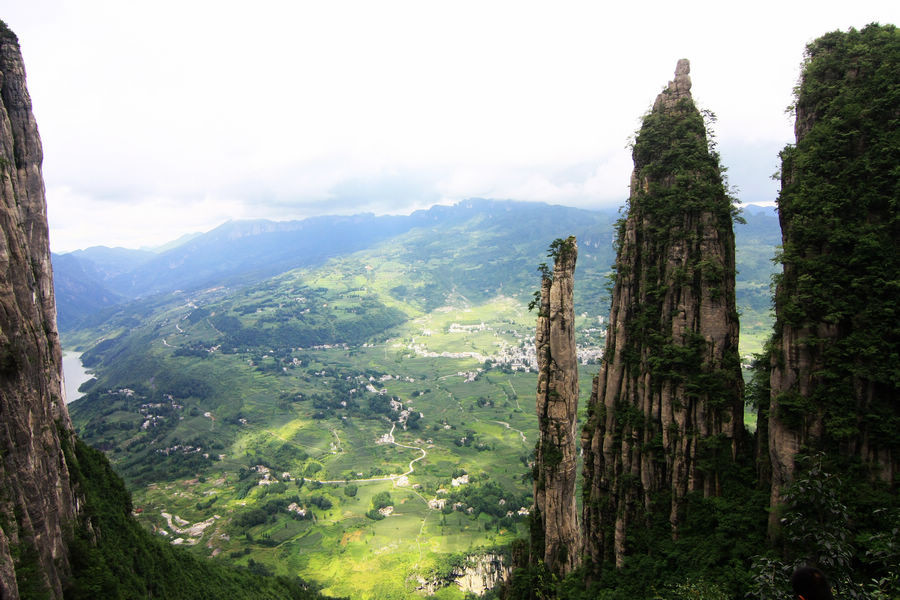 湖北恩施大峡谷擎天一柱。这可不是比克布偶的大块头中国表亲哦!这是屹立在长达108km的恩施峡谷崇山峻岭之间的一根石灰柱。相传,这是天神送给勤劳的恩施百姓的一炷香,如遇苦难,点燃香柱,天神就会下凡相助。